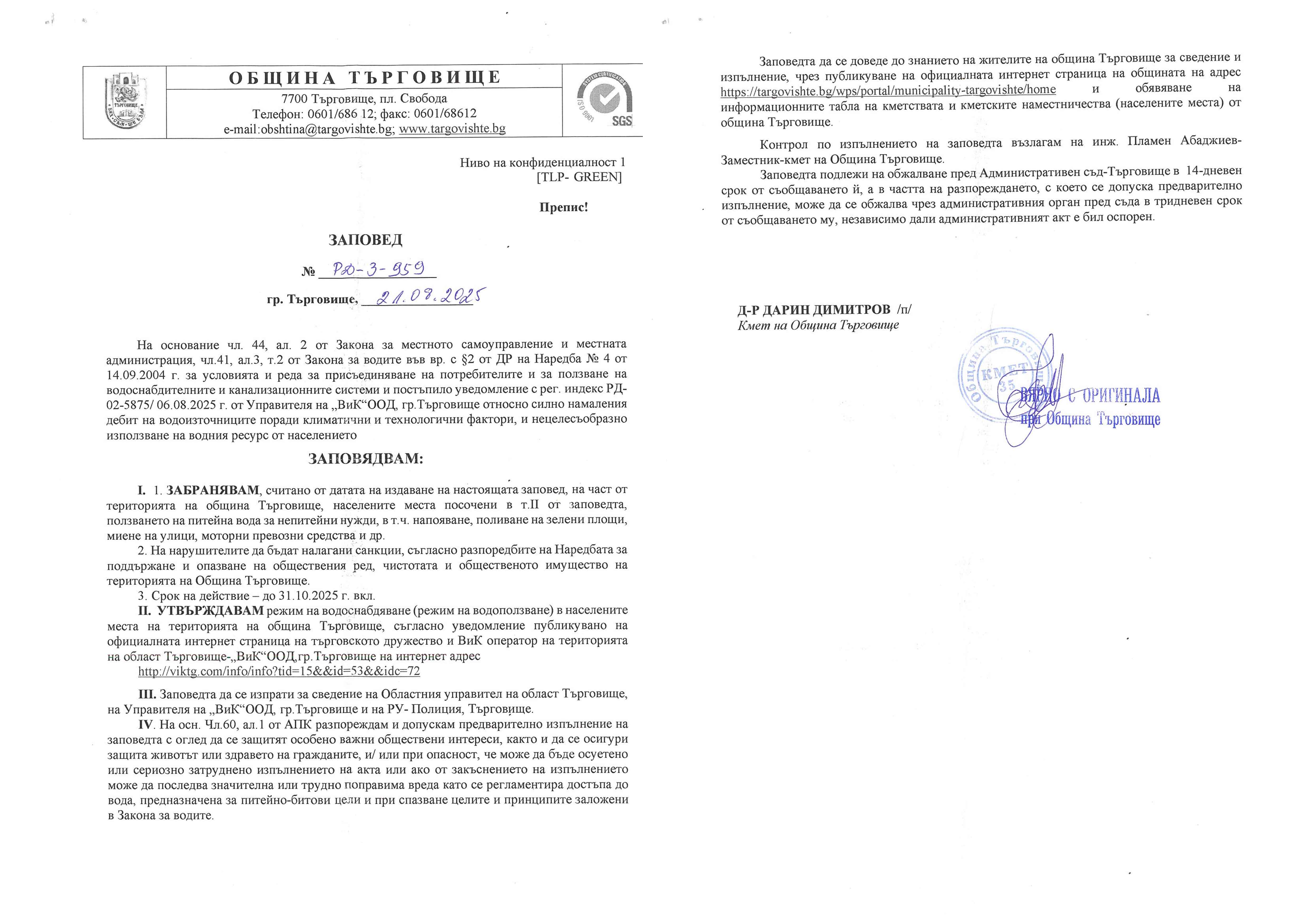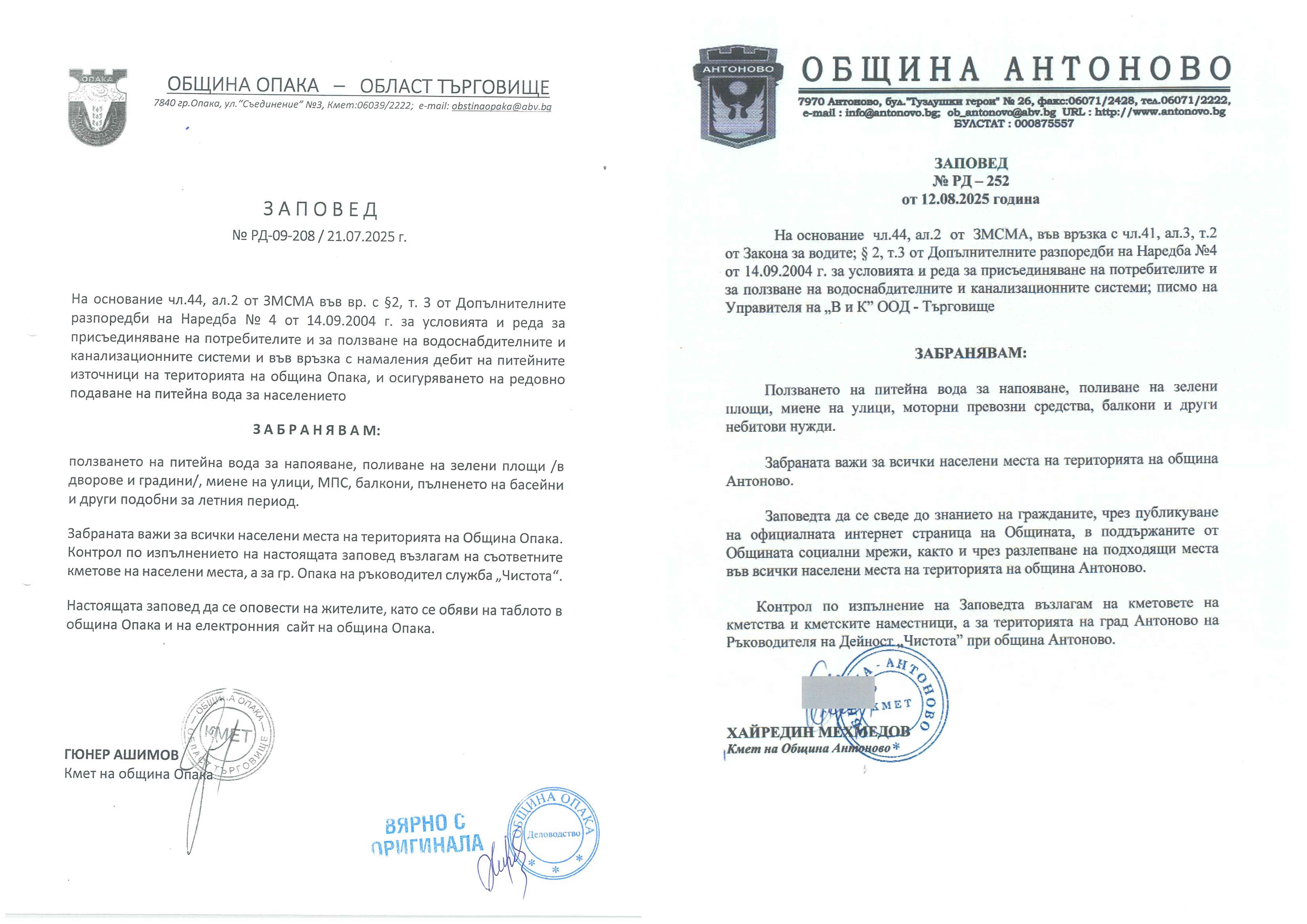 “В и К” ООД гр.Търговище уведомява своите клиенти , че от 01.09.2012 г. могат да заплащат консумираната питейна вода по електронен път ( E-Pay ) както и да получават електронни фактури (eFaktura)