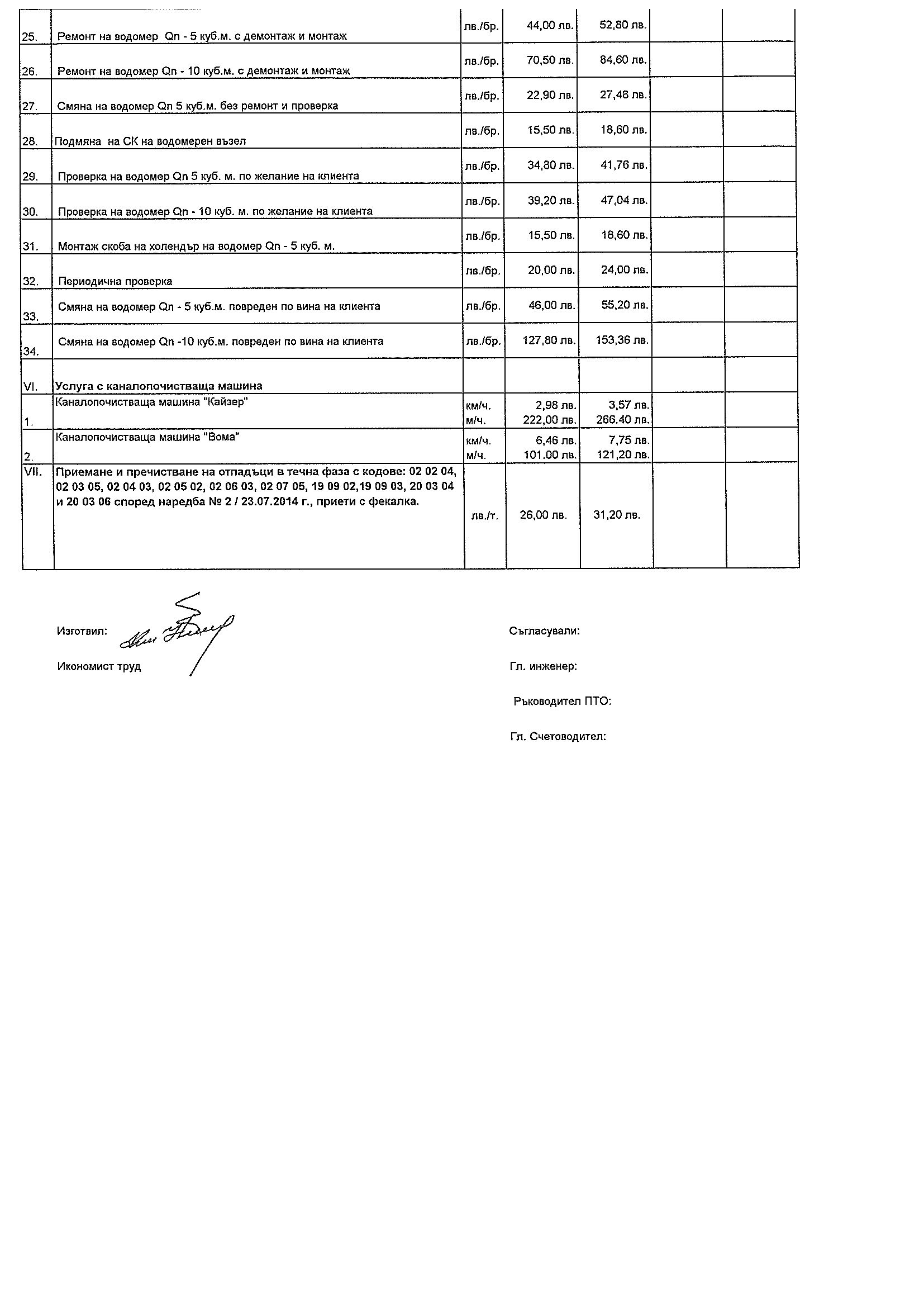 Цени на услуги